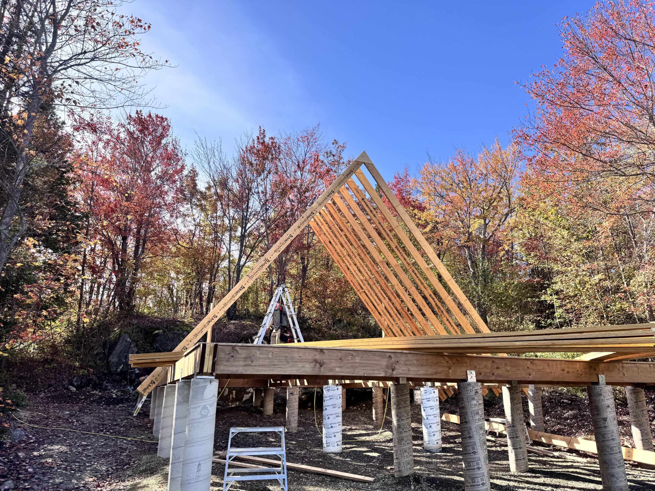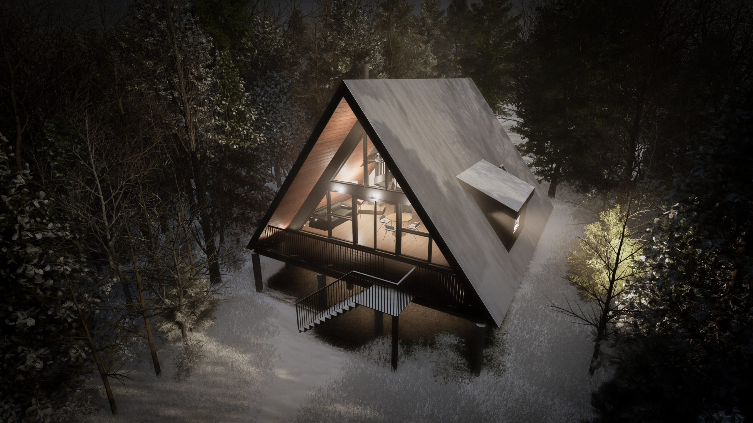 This A-frame house design optimizes the small footprint, while maximizing solar orientation and views on a steep rural site.